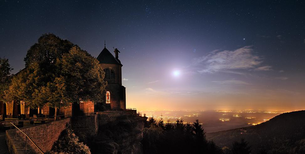 Mont Saint Odile et conjonction Lune-Jupiter et Pleïades