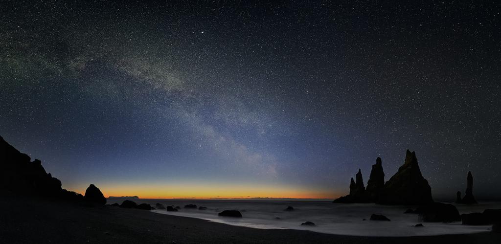 Les aiguilles de Vik sous les étoiles